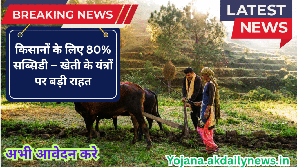 2025 में सरकार ने एक नई पहल की है जिसके तहत किसानों को खेती के आधुनिक यंत्रों (Agriculture Equipment) की खरीद पर 80% तक की सब्सिडी दी जाएगी।